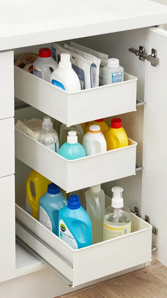 This strategy keeps your cleaning supplies hidden yet accessible, contributing to a more organized and functional kitchen.
