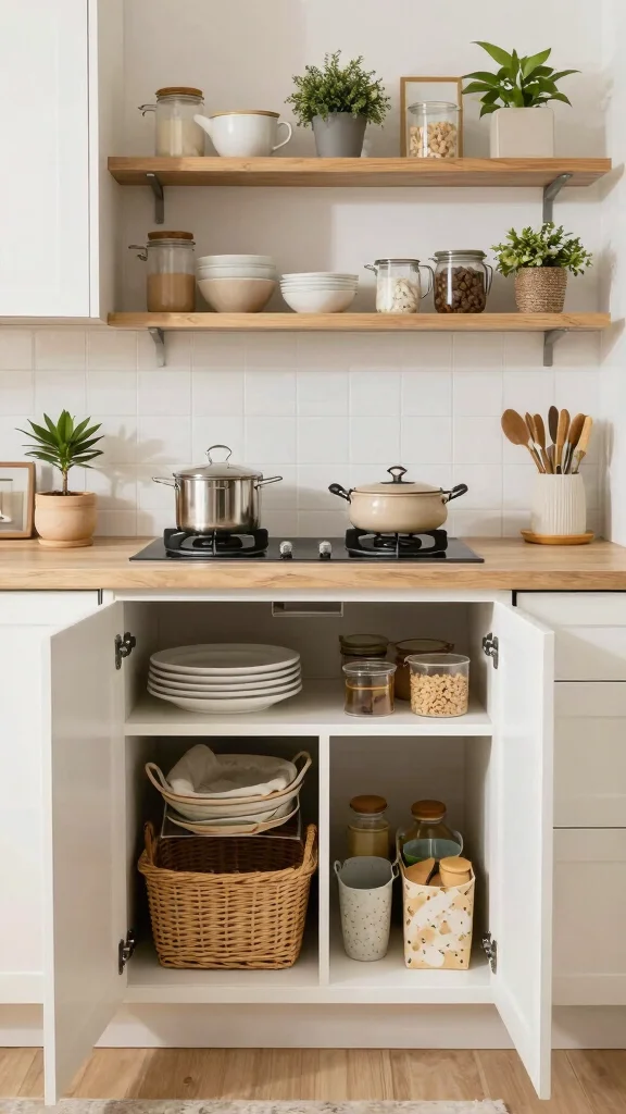 This approach effectively enhances your kitchen’s organization while maintaining a stylish and functional environment.