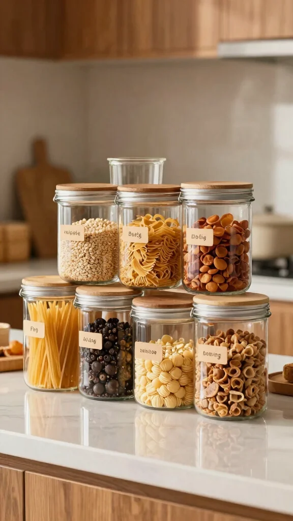 In conclusion, clear jars enhance both organization and aesthetics, making your small kitchen feel spacious and tidy.