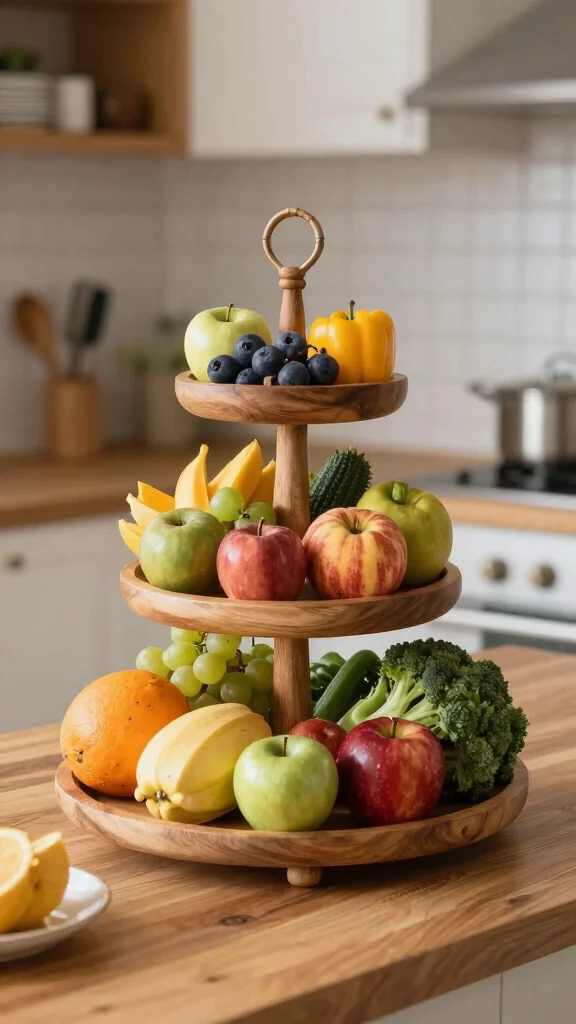 They help keep your kitchen organized while also serving as a design statement. A beautifully arranged tiered stand can become a focal point in your kitchen. Choose designs that resonate with your style, from rustic wood to modern metal, and maintain a tidy appearance for the best impact.