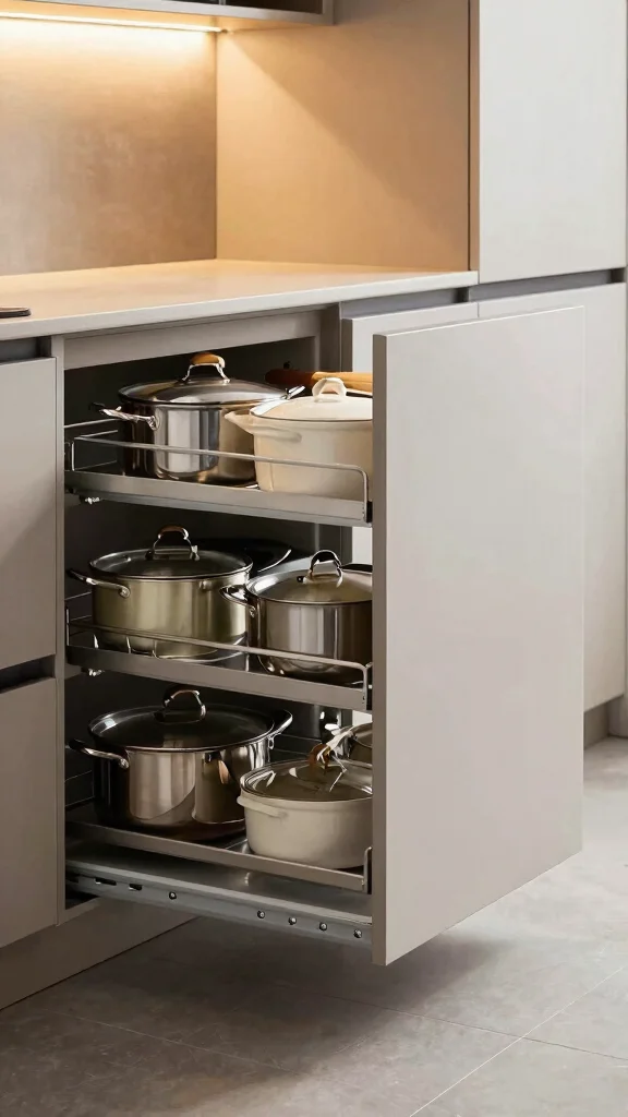 In essence, pull-out cabinets significantly enhance kitchen storage efficiency while ensuring a sleek appearance.