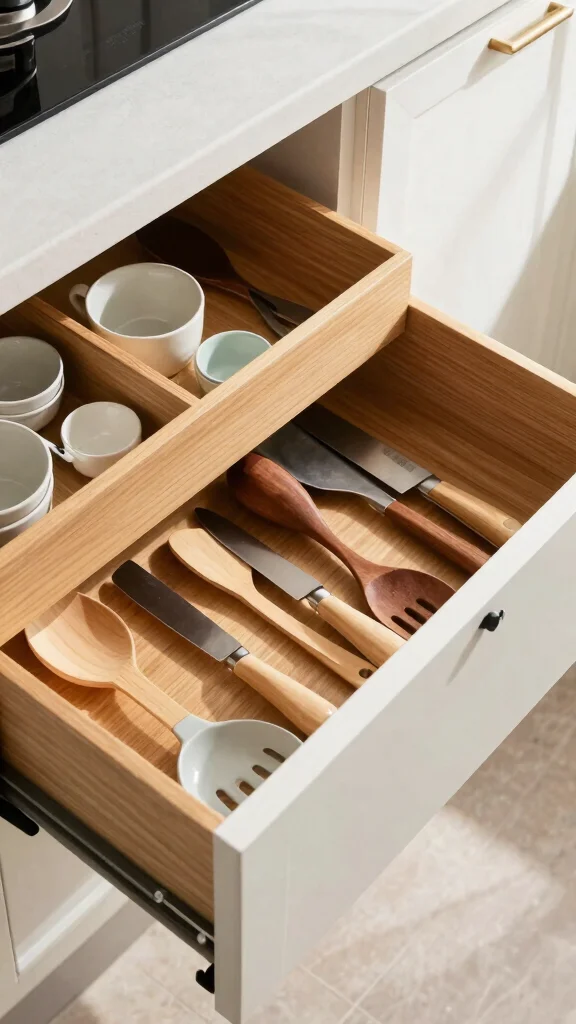 Organizing your drawers not only saves time but also reduces frustration when preparing meals. You can find dividers in various materials, from sleek plastic to warm bamboo, so you can select those that fit your kitchen’s style. A tidy drawer can create a sense of spaciousness even in smaller kitchens.