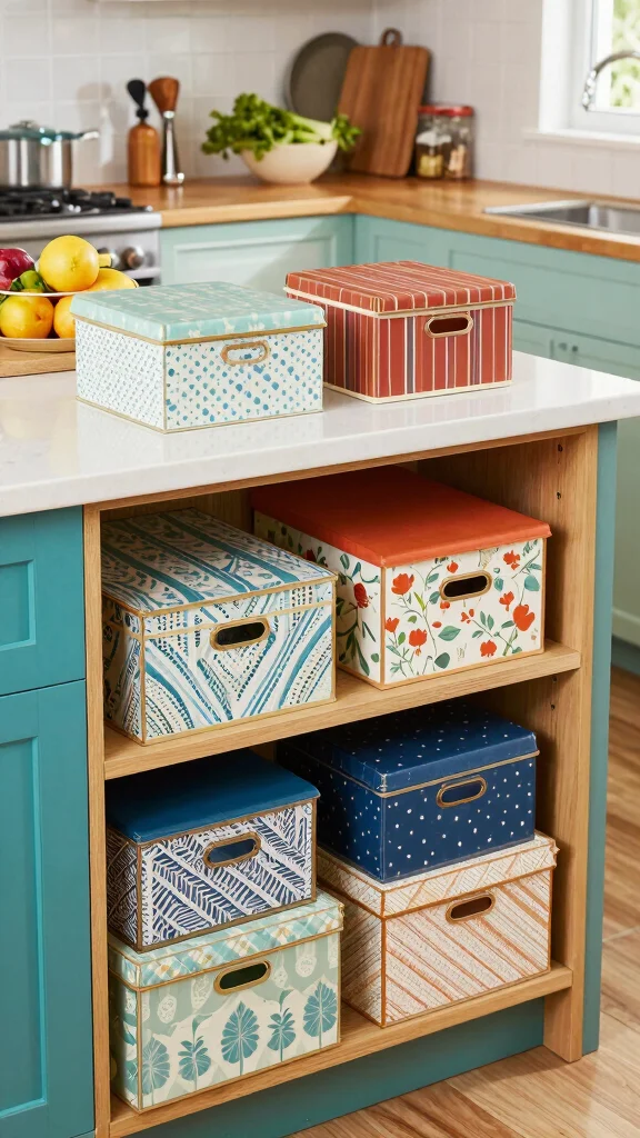 Tip: Select boxes that align with your kitchen’s color scheme for a cohesive look. You can even DIY your storage boxes with paint or fabric that mirrors your overall decor. This approach turns functional storage into a stylish statement.
