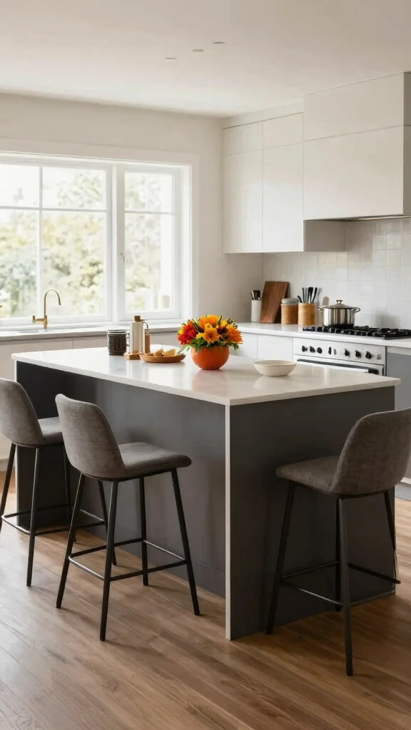 Tip: Choose stools that harmonize with your kitchen’s design and provide comfort for longer sitting periods. This stylish solution ensures your kitchen remains organized and visually appealing without sacrificing comfort.
