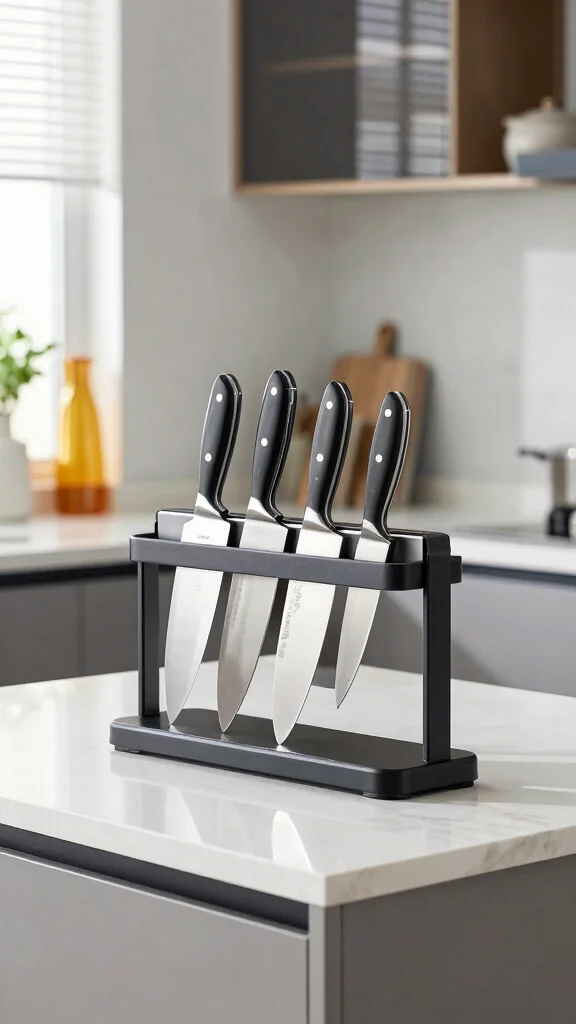 This method saves counter space and enhances your kitchen’s design. Plus, some strips can hold additional metal tools, making them versatile. Ideal for those who appreciate modern aesthetics, this storage solution combines form and function.