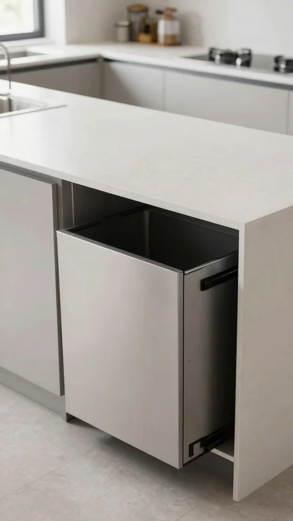 A pull-out trash compartment in your kitchen island is a smart way to keep your space tidy. This hidden feature not only serves a practical purpose but also keeps waste out of sight, enhancing your kitchen’s aesthetics.