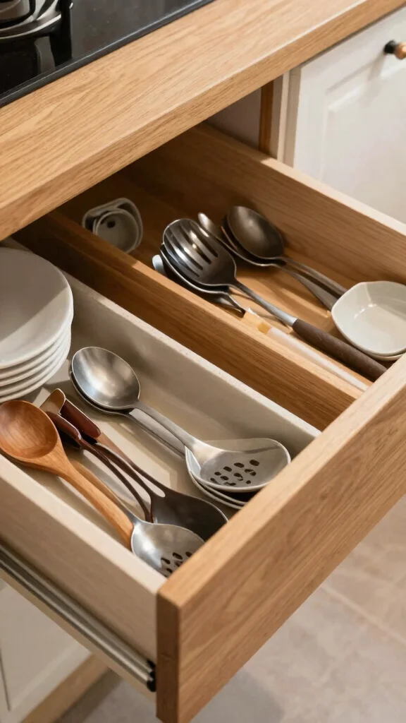 Choose wooden dividers for warmth or clear acrylic for a contemporary vibe. Benefits: This addition saves time during meal prep since you won’t have to dig through disorganized drawers. Custom dividers ensure that your utensils fit perfectly, maximizing functionality in your kitchen.