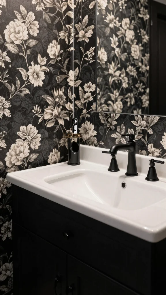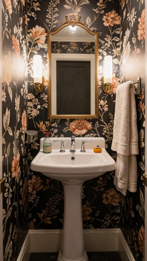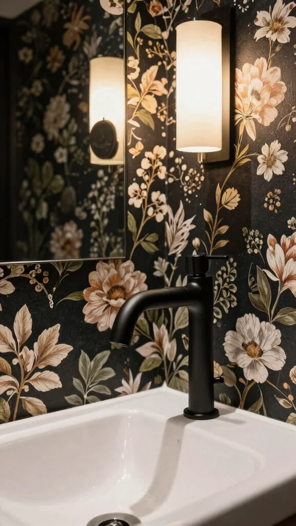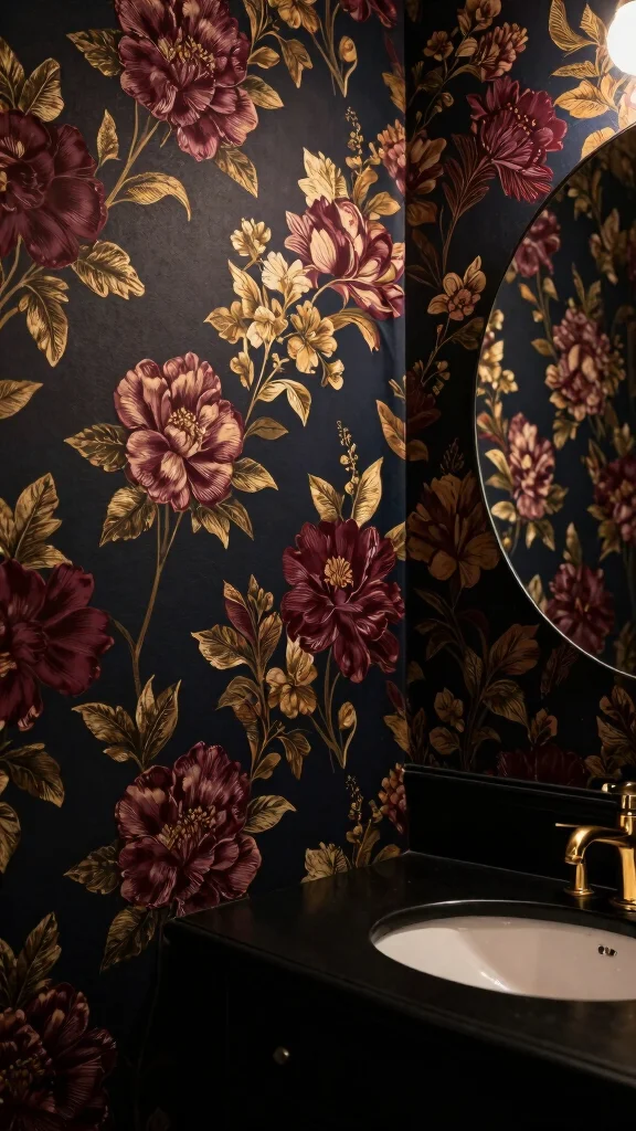 Dark floral wallpaper instantly elevates any powder room, creating an enchanting escape. The combination of deep hues and intricate floral designs brings a sense of drama and elegance, transforming ordinary walls into captivating backdrops. Imagine rich navy or emerald greens adorned with bold blooms in gold or cream, making your space feel both luxurious and inviting.