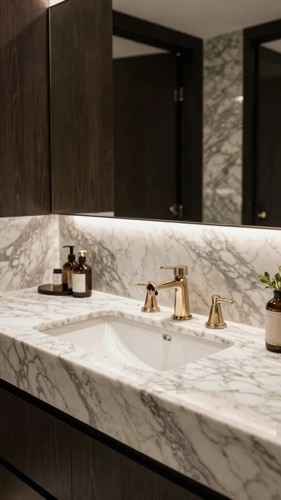 Consider using marble as a focal point, opting for stunning patterns. A veined marble countertop can stand out beautifully against dark cabinetry, while marble tile adds texture and visual depth.