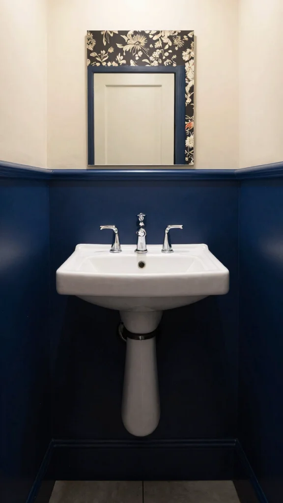 Using chic color blocking adds a modern twist to your powder room. This technique involves contrasting colors to create bold sections within the space. For example, you might choose a dark color for the lower wall and a lighter tone for the upper half, or mix various shades in an abstract pattern.