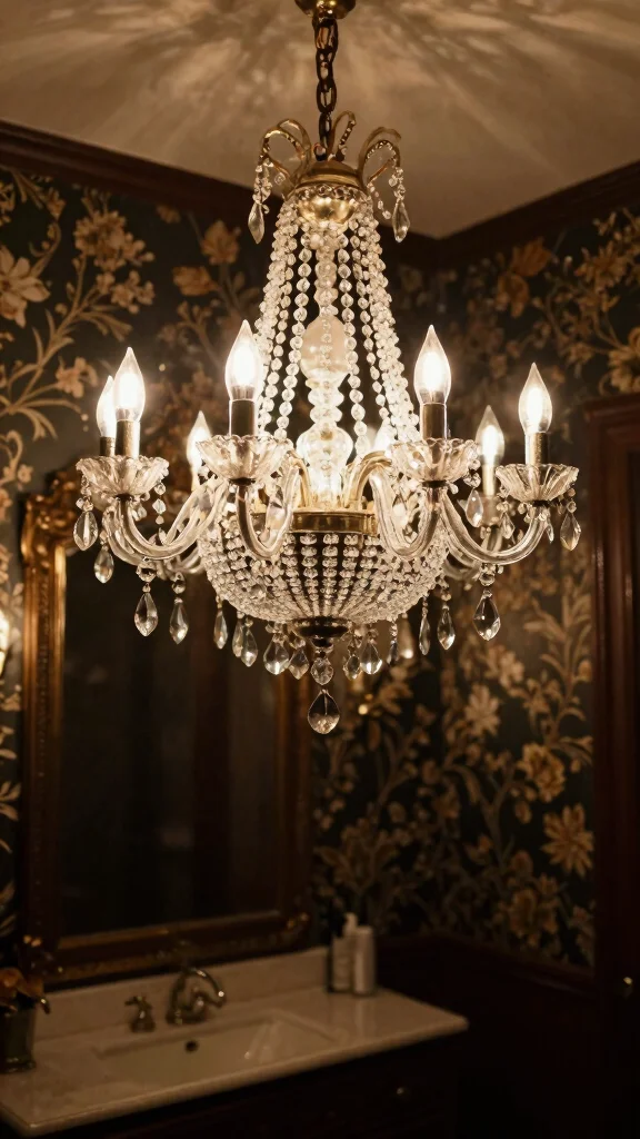 – Choose fixtures that echo the intricate designs of your wallpaper.