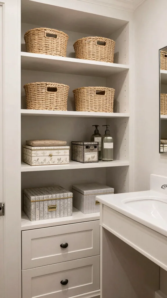 For smaller spaces, vertical storage options like tall shelves or wall racks save space while looking appealing. A well-organized powder room feels more inviting and enhances your overall design.