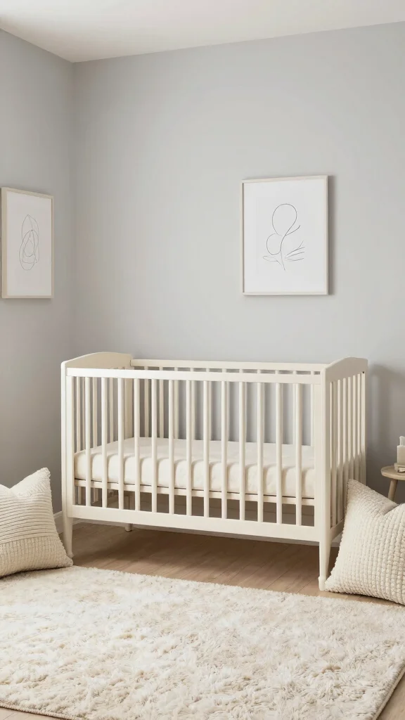 Soft color palettes create a soothing ambiance in a neutral baby room. Shades like mint green, blush pink, and powder blue harmonize beautifully with whites and greys, resulting in a calming effect. This approach fosters a comforting environment where your baby can thrive.