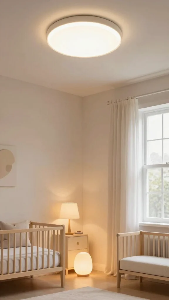 Layered lighting enhances the overall aesthetic while meeting practical needs in your nursery.