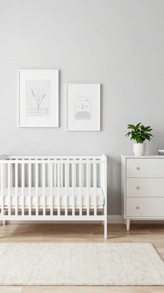 A minimalist nursery feels open and breathable, promoting tranquility and comfort for both baby and parent.
