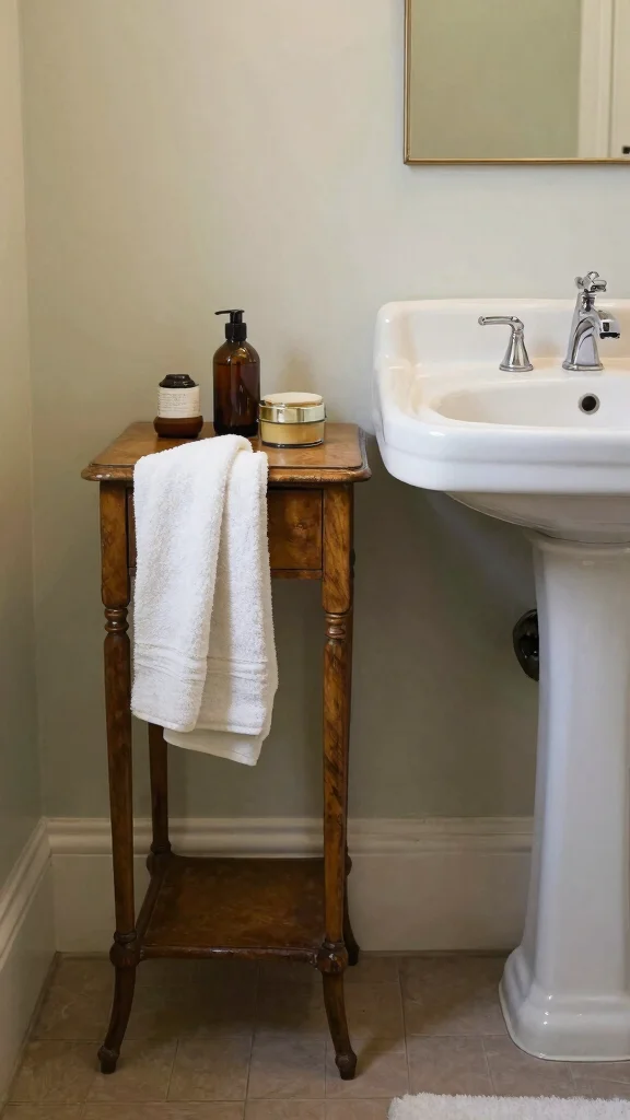 Incorporating antique furniture can add a unique flair to your powder room. A small antique side table or stool beside your pedestal sink can provide extra surface area while enhancing vintage charm. These pieces not only serve practical purposes but also enrich the room’s character.