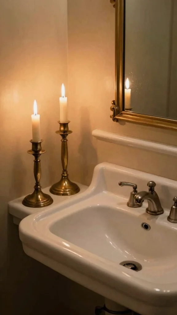 Incorporating candles can create a soothing atmosphere in your powder room. Choose vintage candle holders made from brass or glass and position them on the countertop or nearby shelves. Scented candles in soft hues that align with your decor theme can enhance the sensory experience.