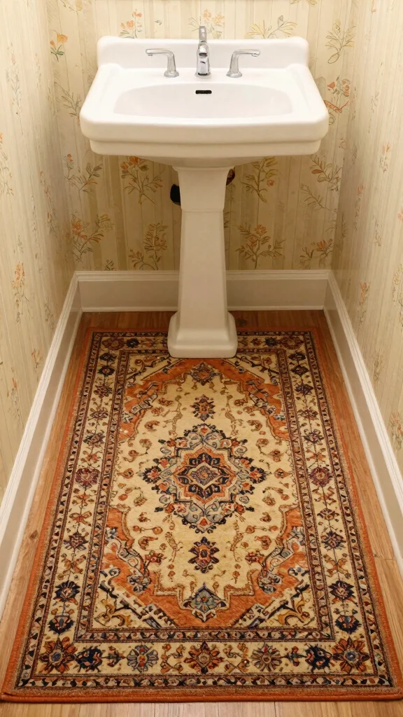 Adding a statement rug can introduce warmth and style to your powder room. Look for rugs with vintage patterns or textures that complement your color scheme, creating a cohesive design. A well-placed rug can define the space and add comfort underfoot, especially in smaller areas.