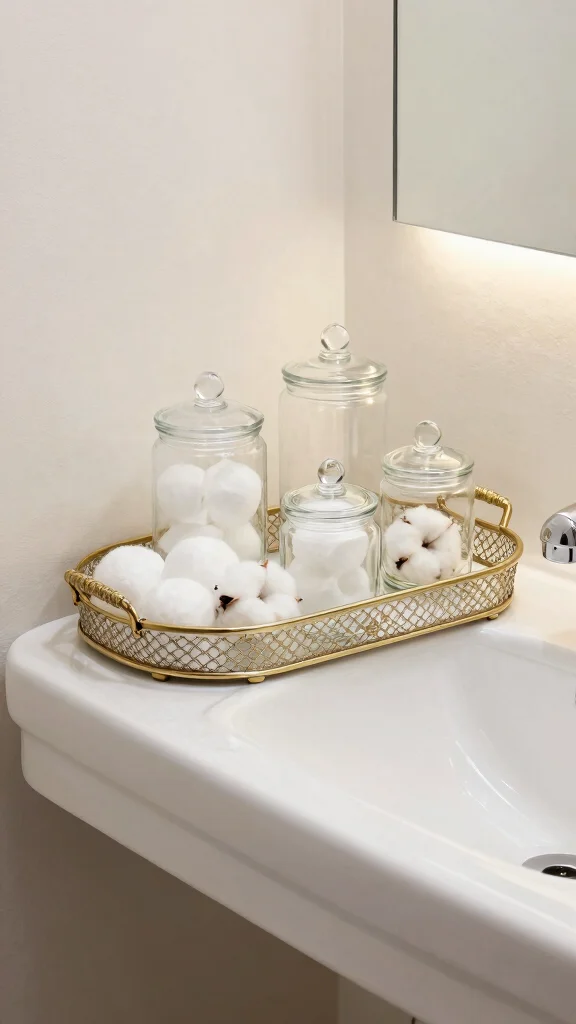 – Group accessories on decorative trays for organization.