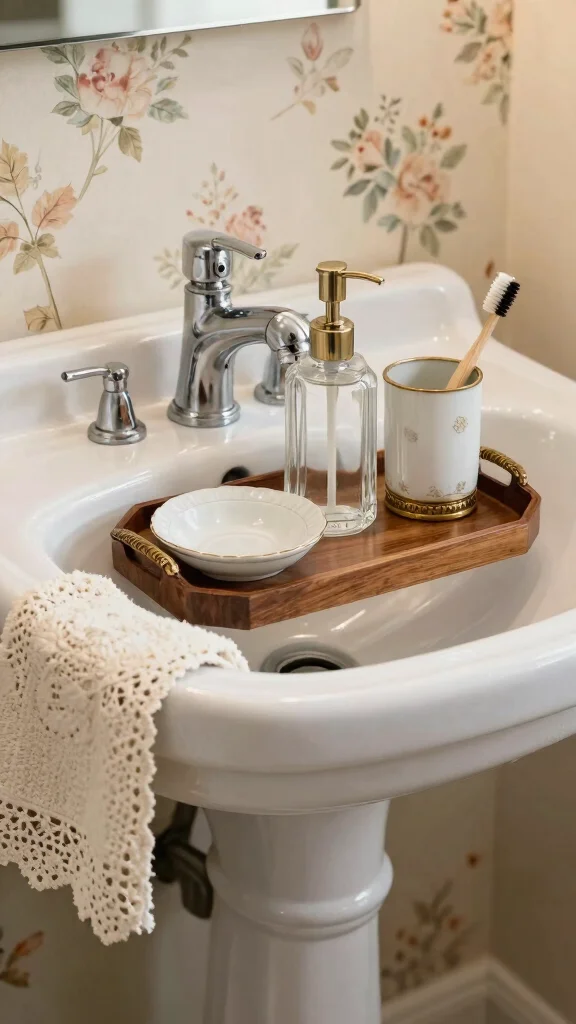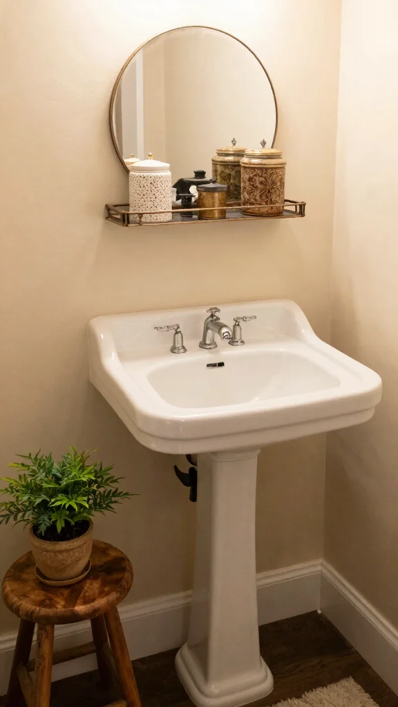 Accessorizing your pedestal sink can significantly enhance its charm and functionality. Incorporate unique, vintage-inspired accessories such as antique soap dishes or ceramic soap dispensers that reflect your personal style. Items made from materials like porcelain and glass can add character while serving practical purposes.