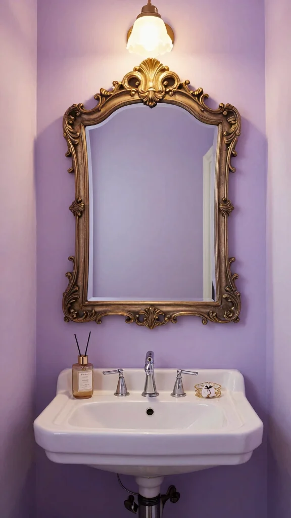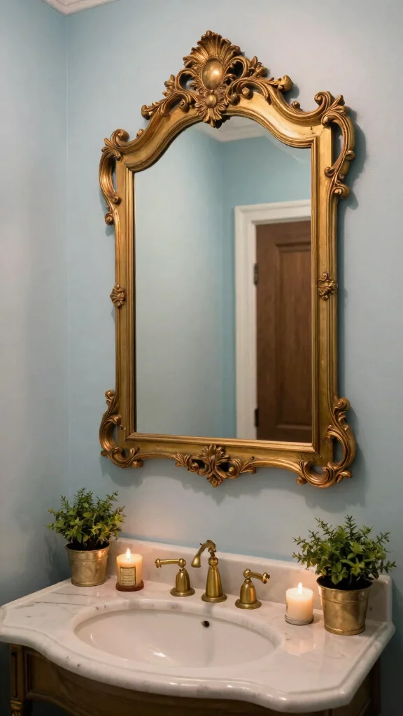 Opt for ornate framed mirrors to add a vintage touch and enhance the depth of your powder room.
