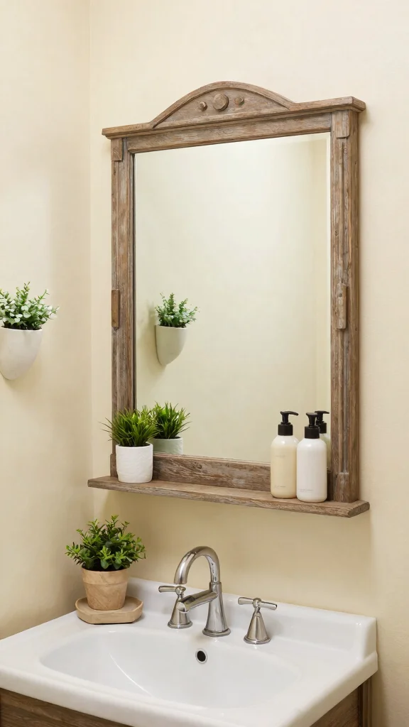 These mirrors offer space for decorative items, toiletries, or plants, seamlessly blending functionality with decor. Their vintage style can elevate your bathroom while keeping essentials organized and within reach.