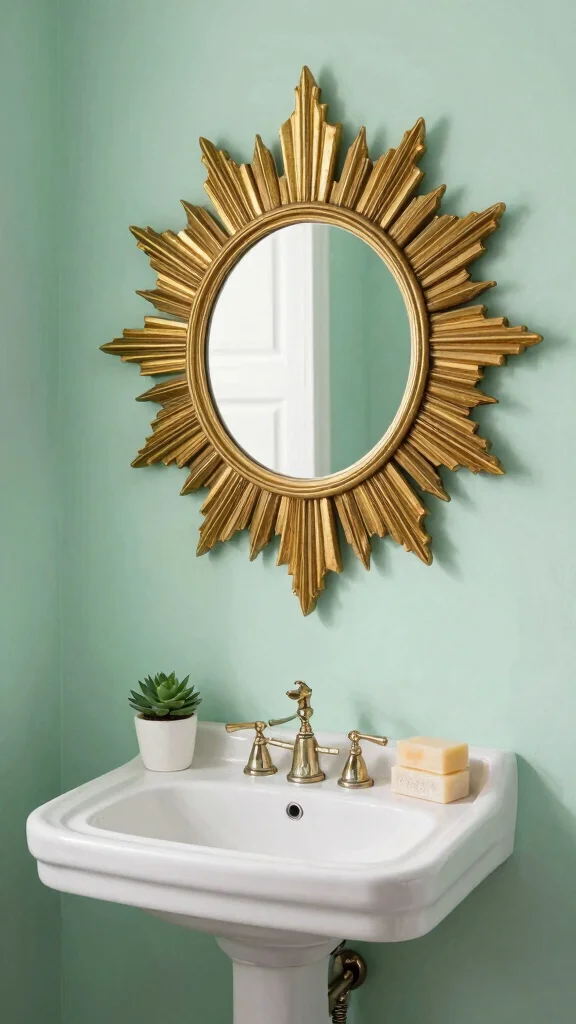 Vintage-inspired options like sunburst mirrors, beveled oval frames, or distressed-framed rectangles bring depth and personality. Create a focal point by mounting one statement mirror above the sink, then balance with a secondary smaller mirror on another wall to extend the reflection. Choose finishes in warm metals or aged wood to coordinate with decorative mirrors and wall mirror styles, and tie the look together with interior design tips such as cohesive hardware and lighting.