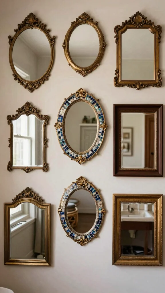 Experiment with eclectic mixed-media mirrors for a unique and personalized vintage-inspired look.