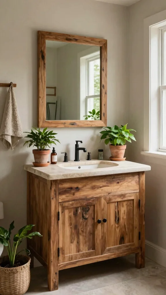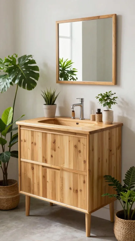 Pair your sustainable vanity with water-saving fixtures and eco-conscious accessories to complete the look. Incorporating plants can further enhance the theme of sustainability, creating a fresh and inviting atmosphere.