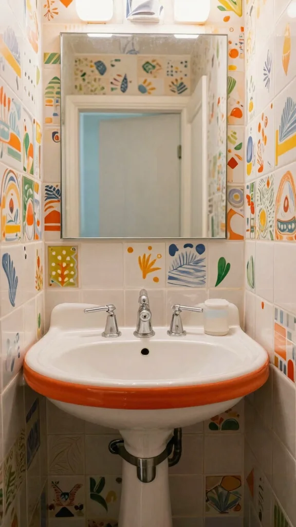 Pair your retro vanity with whimsical wallpaper or tiles to amplify the impact. Bright colors can create a cheerful and inviting atmosphere while honoring classic design.