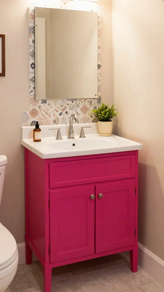 If you’re ready to break away from neutral tones, a bold vanity can become the highlight of your small bathroom. Imagine deep blues, vibrant greens, or even striking reds that not only make a statement but also transform the space entirely.