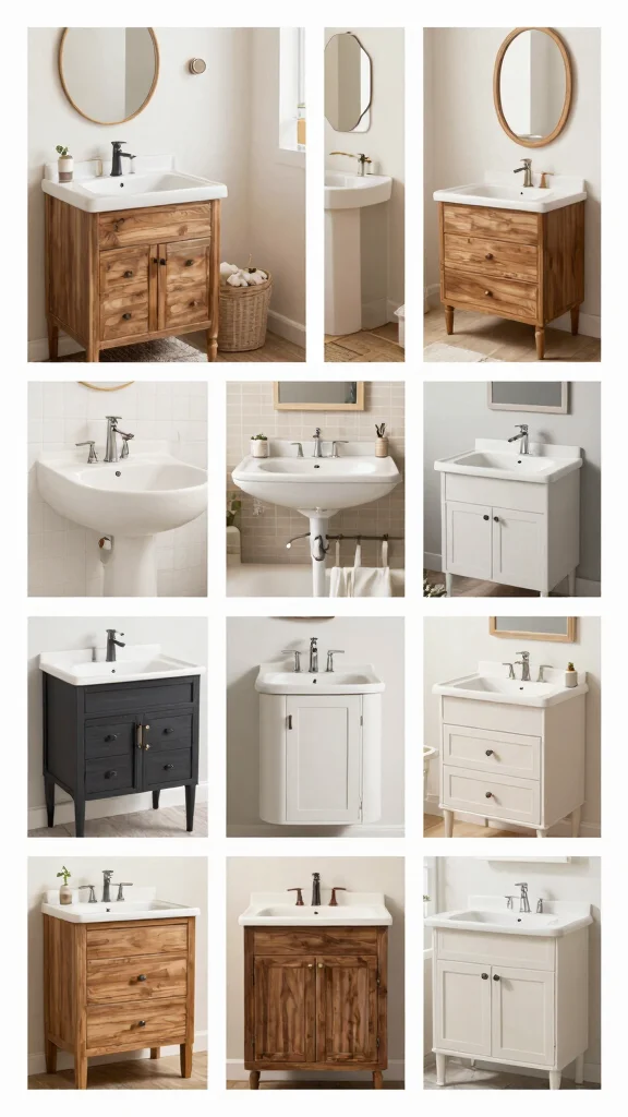 Consider space-saving sink solutions like wall-mounted vanities, slim corner units, or a compact pedestal with a small vanity cabinet. A shallow depth (12–16 inches) maintains floor space, and an integrated sink minimizes clutter. A floating vanity with a frameless mirror and discreet lighting keeps the room feeling airy, while a recessed shelf above the vanity adds storage without crowding the sink. These ideas align with space-saving sink solutions and modern bathroom decor in small spaces.
