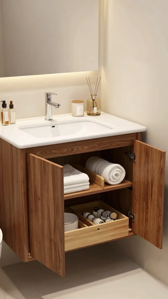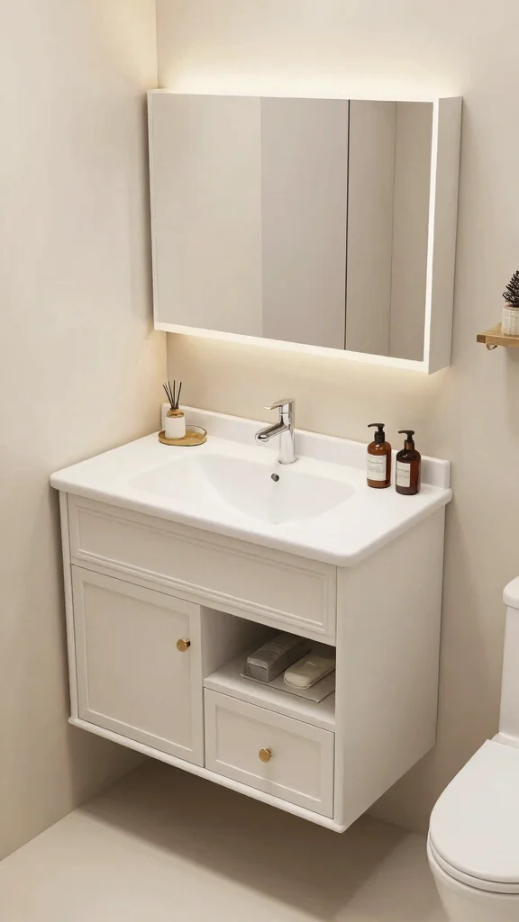 In small bathrooms, maximizing storage is crucial. Look for compact bathroom storage solutions, such as vanities with shelves or drawers. Under-sink storage solutions can help keep your essentials organized and out of sight. If you’re opting for a floating vanity, consider wall-mounted shelving above to add extra storage without taking up floor space.