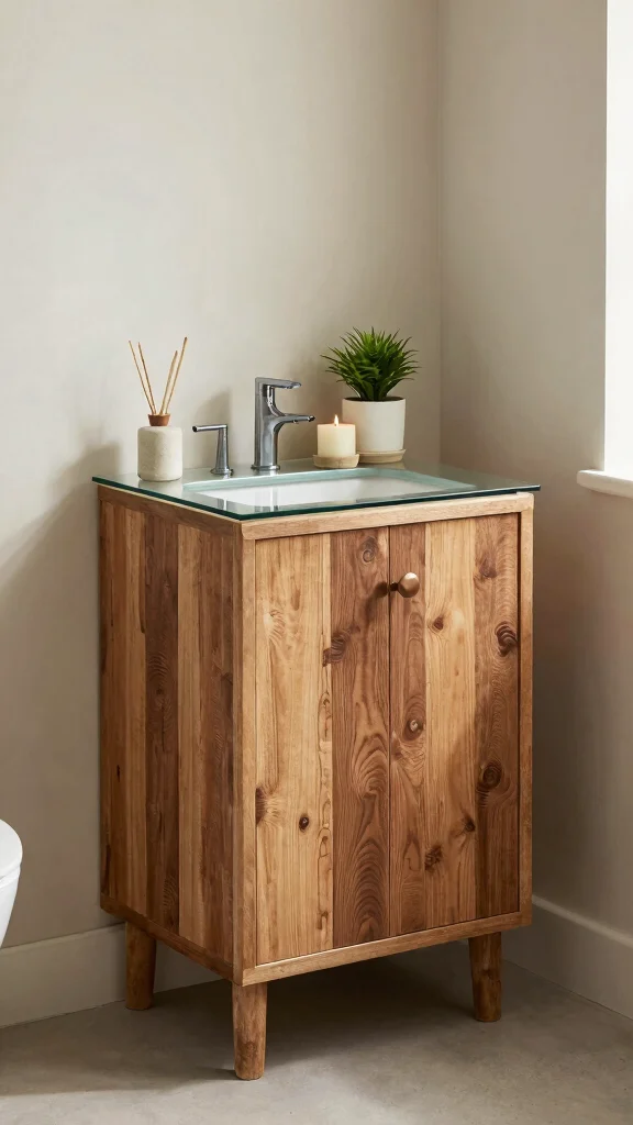 Choose a vanity crafted from eco-friendly materials like bamboo, reclaimed wood, or FSC-certified plywood with low-VOC finishes to cut indoor toxins and environmental impact.