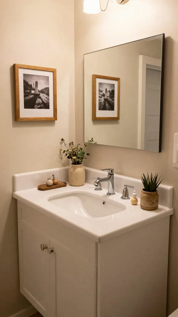 Don’t forget to add personal touches to your small bathroom vanity! Incorporating items that reflect your personality can make your space feel truly unique. This could include decorative items, unique storage solutions, or quirky accessories that showcase your style. Mixing different textures and styles can create a playful yet cohesive look that stands out.