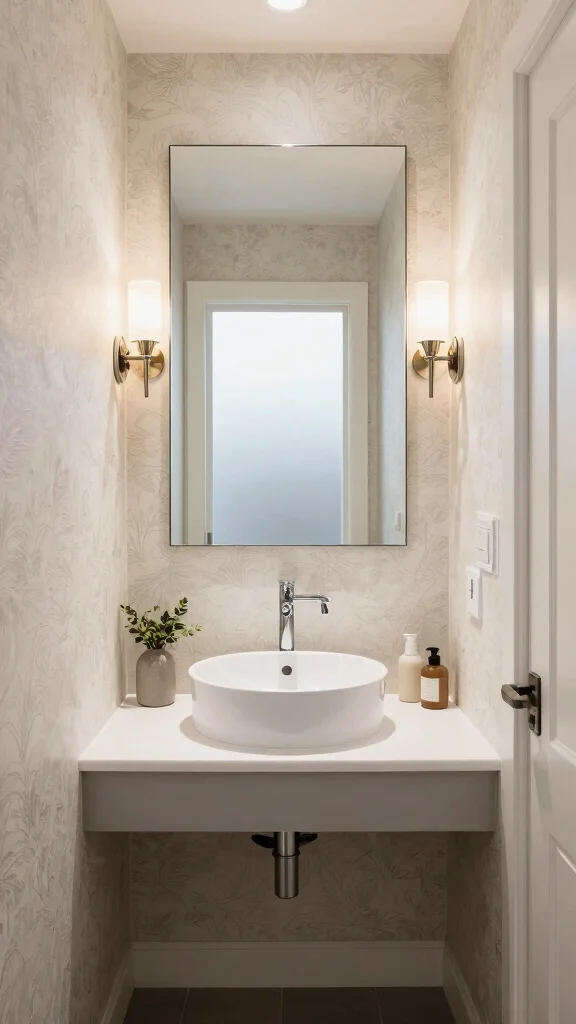Lighting can create a more spacious feel in your powder room. Choose sleek, modern light fixtures that don’t hang too low. Consider wall sconces on either side of the mirror to enhance brightness and provide an illusion of depth. If you can, incorporate natural light with a small window treatment that allows light while maintaining privacy.
