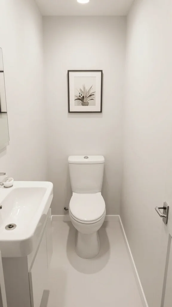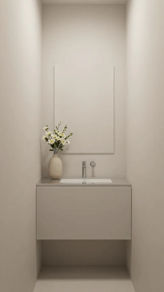 A minimalist aesthetic can transform your narrow powder room into a peaceful retreat, fostering a sense of calm and relaxation.