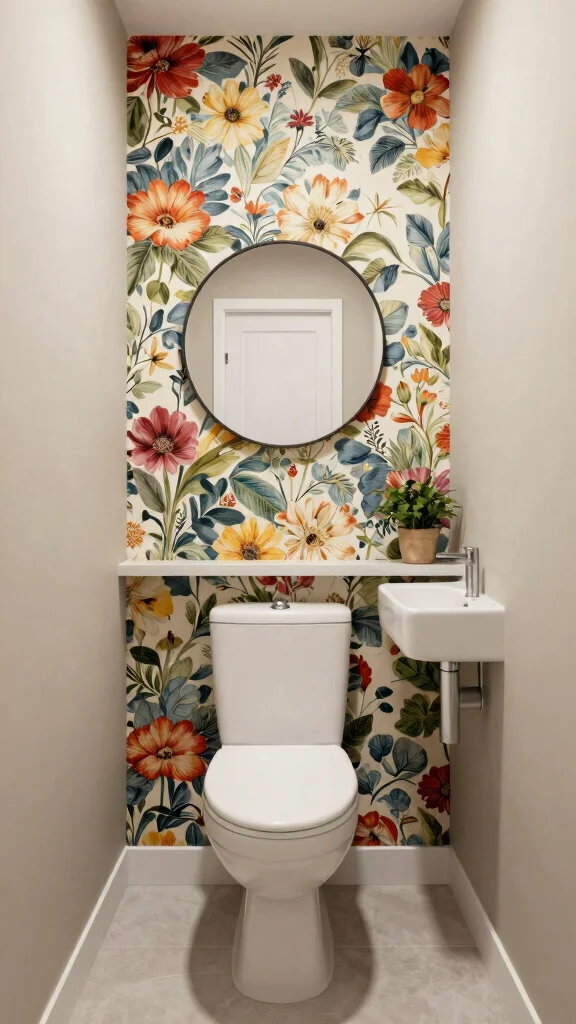 Making a bold wallpaper choice can dramatically elevate the ambiance of your powder room, creating a lively and inviting atmosphere.