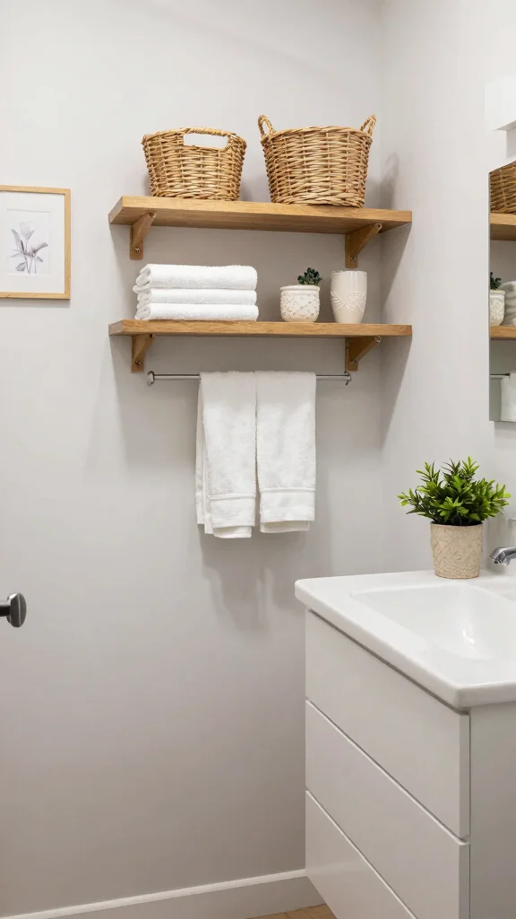 Open shelving allows you to showcase beautiful towels or unique decor, blending functionality with style. The goal is to balance visibility and storage to create a chic and uncluttered environment.