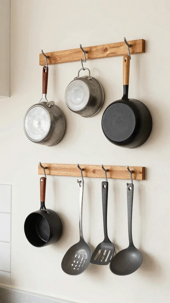Utilizing wall hooks is an efficient way to maintain a clean and organized kitchen. By hanging pots, utensils, and towels, you can keep surfaces clear while having everything you need at your fingertips. Imagine a wall adorned with decorative hooks showcasing your kitchen tools, adding both functionality and flair.