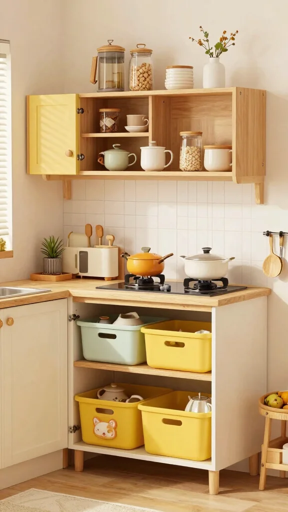 This practical solution maintains a tidy kitchen while showcasing your creative approach to organization.
