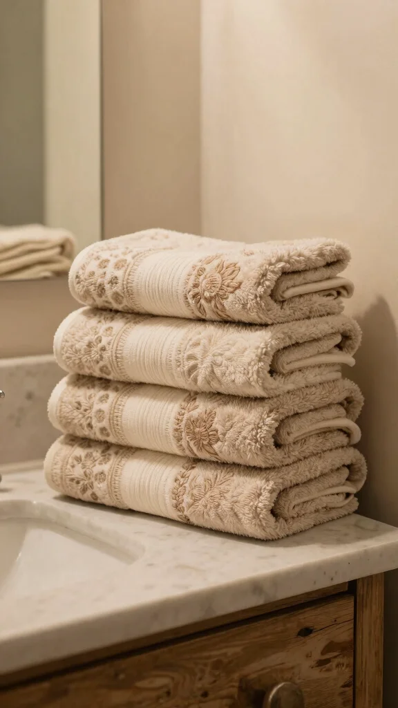 This layered approach not only keeps your bathroom organized but also enhances its inviting charm, creating a warm and cozy atmosphere.