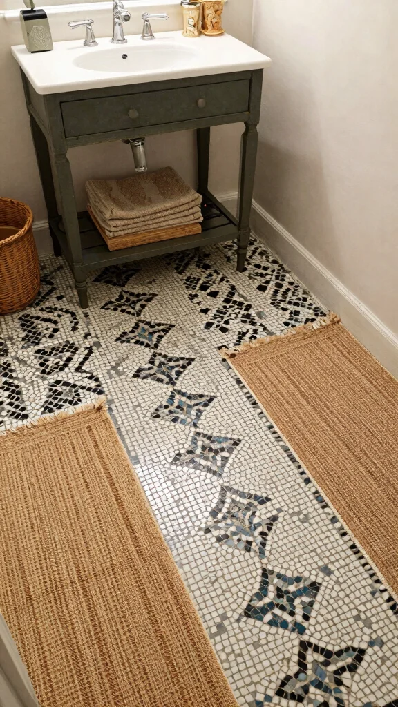 Fun fact: vanity ideas bathroom trends show that pairing mosaic tiles with warm wood floors can boost perceived warmth by up to 25%. Add a coordinating area rug, and your vanity will feel instantly cohesive and inviting.