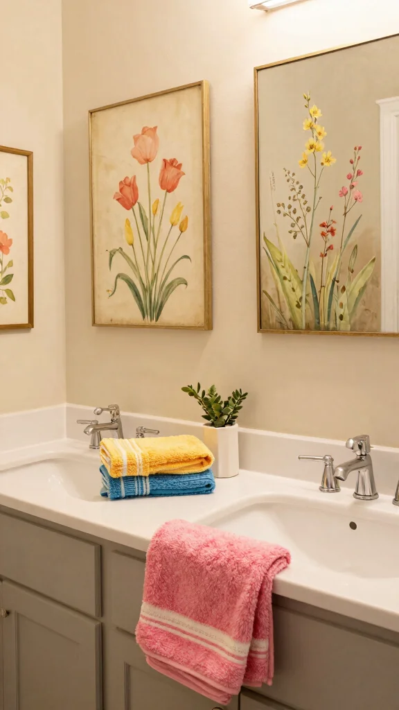 These artistic touches not only enhance the bathroom’s charm but also create a dynamic space that feels inviting and personal.