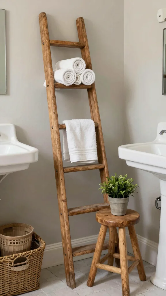 Storage doesn’t have to be purely functional; it can also be stylish with vintage accents. Consider incorporating charming wooden ladders or antique stools to keep towels and essentials within easy reach. These vintage pieces add character while also serving as decorative elements.