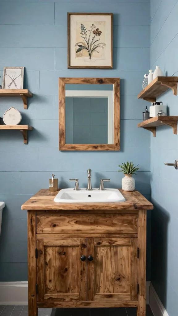 Did you know textured wall finishes can visually enlarge a bathroom by up to 15%? Beadboard, shiplap, or exposed brick create a rustic backdrop for your vanity, while light colors brighten the space and let vintage wall art shine.