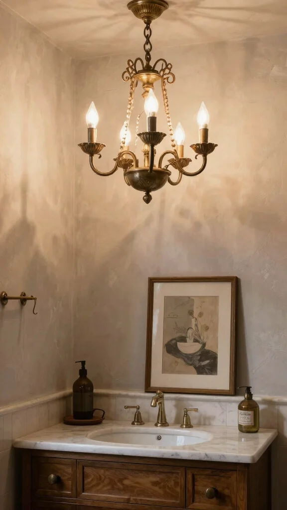 The right lighting can dramatically change the atmosphere of your bathroom, and vintage lighting fixtures are perfect for creating an inviting space. Consider a statement chandelier or retro sconces that illuminate your vanity beautifully. These fixtures not only provide essential lighting but also act as eye-catching focal points.