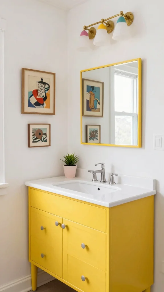 Brightening your bathroom can be as simple as opting for a colorful painted vanity. Selecting bold hues or soft pastels can create a stunning focal point that reflects your style. Pairing these vibrant vanities with vintage wall art creates a cheerful and inviting atmosphere.